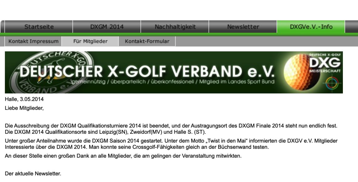 Ausserdem sind der Präsident so wie der Vizepräsident des DXGV Mitglieder bzw. Gründungsmitglieder der Trojan X Golfer Halle, auch die fallen durch Ihr Überangebot an überteuerten Crossgolfangeboten auf Ihrere Homepage auf.