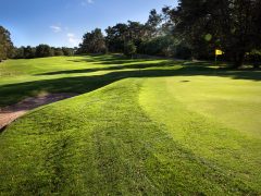Die auf jahrhundertealten Sanddünen gelegene, leicht hügelige Anlage wird im Süden und im Westen von dichtem Kiefernwald begrenzt. Im Osten reicht der Blick über Felder bis nach Heidelberg und zum Odenwald. Der alte Baumbestand verleiht dem traditionellen Golfplatz der Metropolregion eine besondere Note und lässt auch bei großer Hitze ein angenehmes Spiel zu. Wasserhindernisse sind zwar nicht vorhanden, dafür sind die schwer zu spielenden Grüns von Bunkern gut verteidigt und verlangen auch gut geübten Golfern Respekt ab.