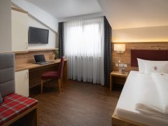 Von regionalen Köstlichkeiten in der schmucken Gaststuben bis hin zur internationalen Feinschmeckerküche im mediterranen Abendrestaurant „Angela“ – das Haus bietet ein breites gastronomische Angebot. Erholung bietet ein Dachhallenschwimmbad im römischen Stil mit Sauna, Dampfbad, Tepidarium , Solarium und Aromaduschen.